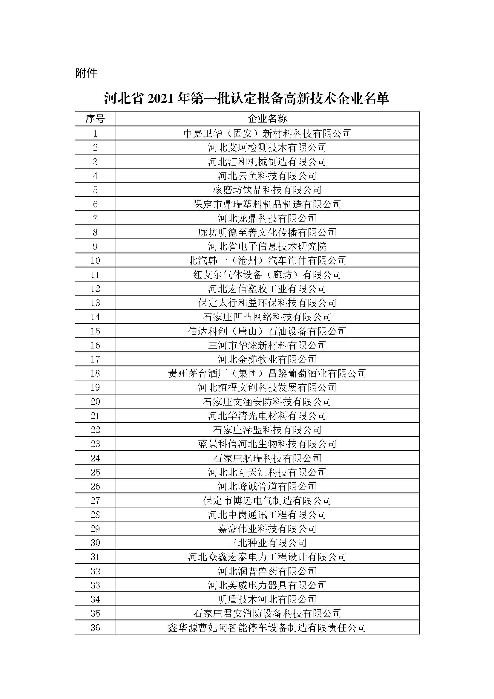 附件:河北省2021年第一批認(rèn)定報備高新技術(shù)企業(yè)名單