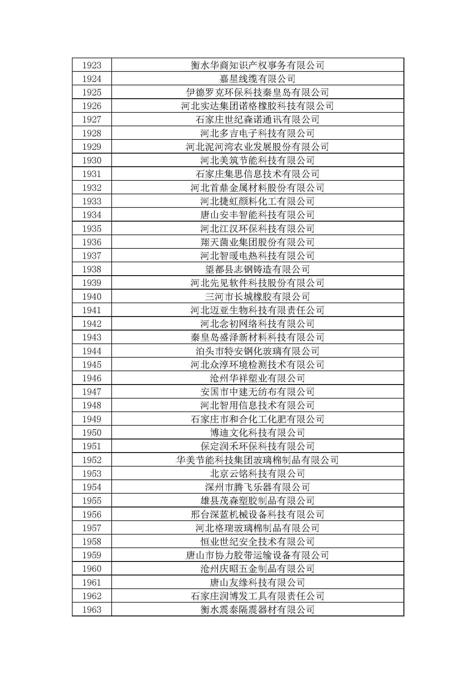 根據(jù)《高新技術(shù)企業(yè)認(rèn)定管理辦法》(國科發(fā)火〔2016〕32號)和《高新技術(shù)企業(yè)認(rèn)定管理工作指引》(國科發(fā)火〔2016〕195號)有關(guān)規(guī)定,現(xiàn)將河北省2021年第一批認(rèn)定報備的1979家高新技術(shù)企業(yè)名單(詳見附件)予以公示,公示期為10個工作日。