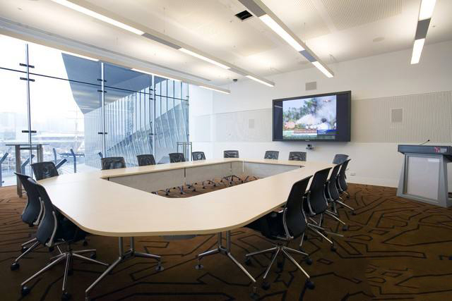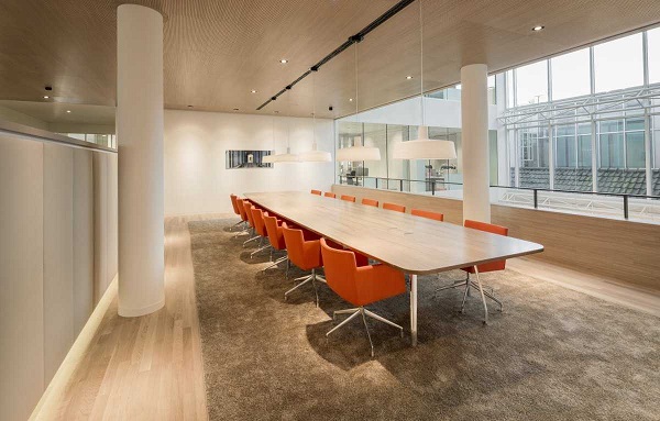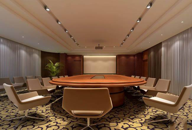 辦公室設(shè)計中,會議室所占的比重相當(dāng)重要,因此在會議室設(shè)計上一定要有所講究。城起的設(shè)計師說在會議室設(shè)計上要注意的主要有三大點:燈光、布局與色彩。燈光照度是視頻會議室的一個基本的必要條件,由于電視會議召開時間具有隨機性,故辦公室設(shè)計時,會議室內(nèi)應(yīng)用人工冷光源,避免自然光。會議室的門窗需用深色窗簾遮擋。