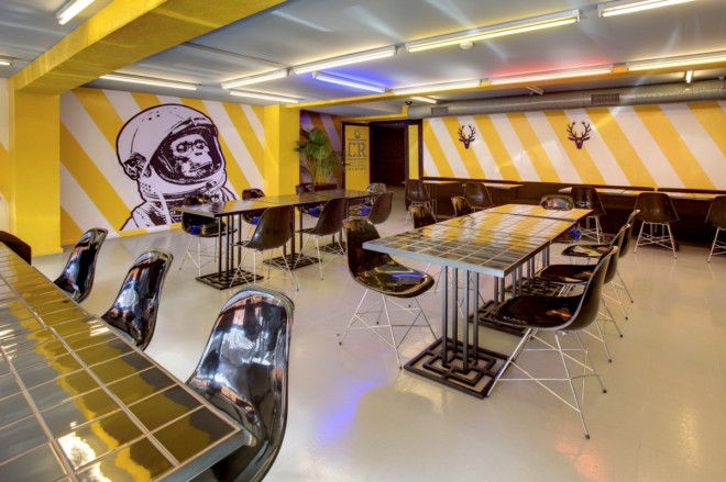 休息室同樣是不可或缺的酷炫工業(yè)風(fēng)格,我們可以在辦公室內(nèi)隨處看到設(shè)計(jì)師原來保留的破舊感,各種管道也是突兀的裸露在外面,沒有包裝好的打算。這樣的空間你第一眼看上去的是什么感覺呢?我沒有感覺到雜亂,反而感覺到了一種隨性的自在,特別是將懶人椅擺放成一個(gè)圈,特別適合部門、小組之間開會(huì),特別有氛圍。