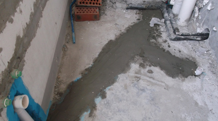 在最易產(chǎn)生滲漏的部位,將混凝土找平層形成二道止水帶,一旦地面因沉降等因素而滲漏時(shí),能將滲漏范圍控制在最小區(qū)域。