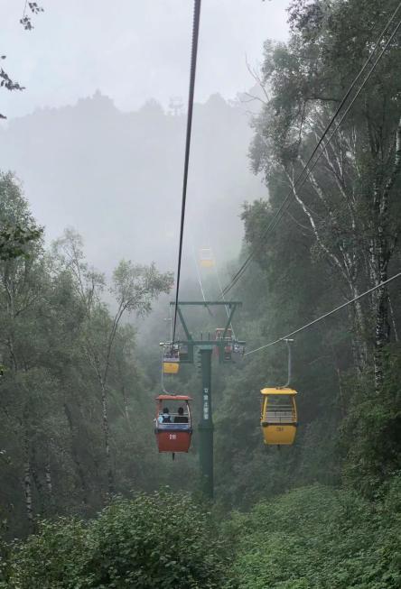 第二天行程安排就是攻上駝峰,駝梁因山頂兩峰此起彼伏,形如駱駝峰脊而得,駝峰就是最高處,我們?cè)缟?點(diǎn)到達(dá)山腳,開始爬山,清晨山中環(huán)境清幽,云霧繚繞,我們沿著蜿蜒山路,到達(dá)了纜車處,為了保存體力,我們選擇的乘坐單程上山的纜車,和別處的纜車不同,駝梁山的纜車是跨過一座山峰,到山腳下,再爬駝梁主峰。纜車是框架的,沒有玻璃,可以清楚的近距離觀賞漫山的林木,那種美景,單純爬上去是看不到的。