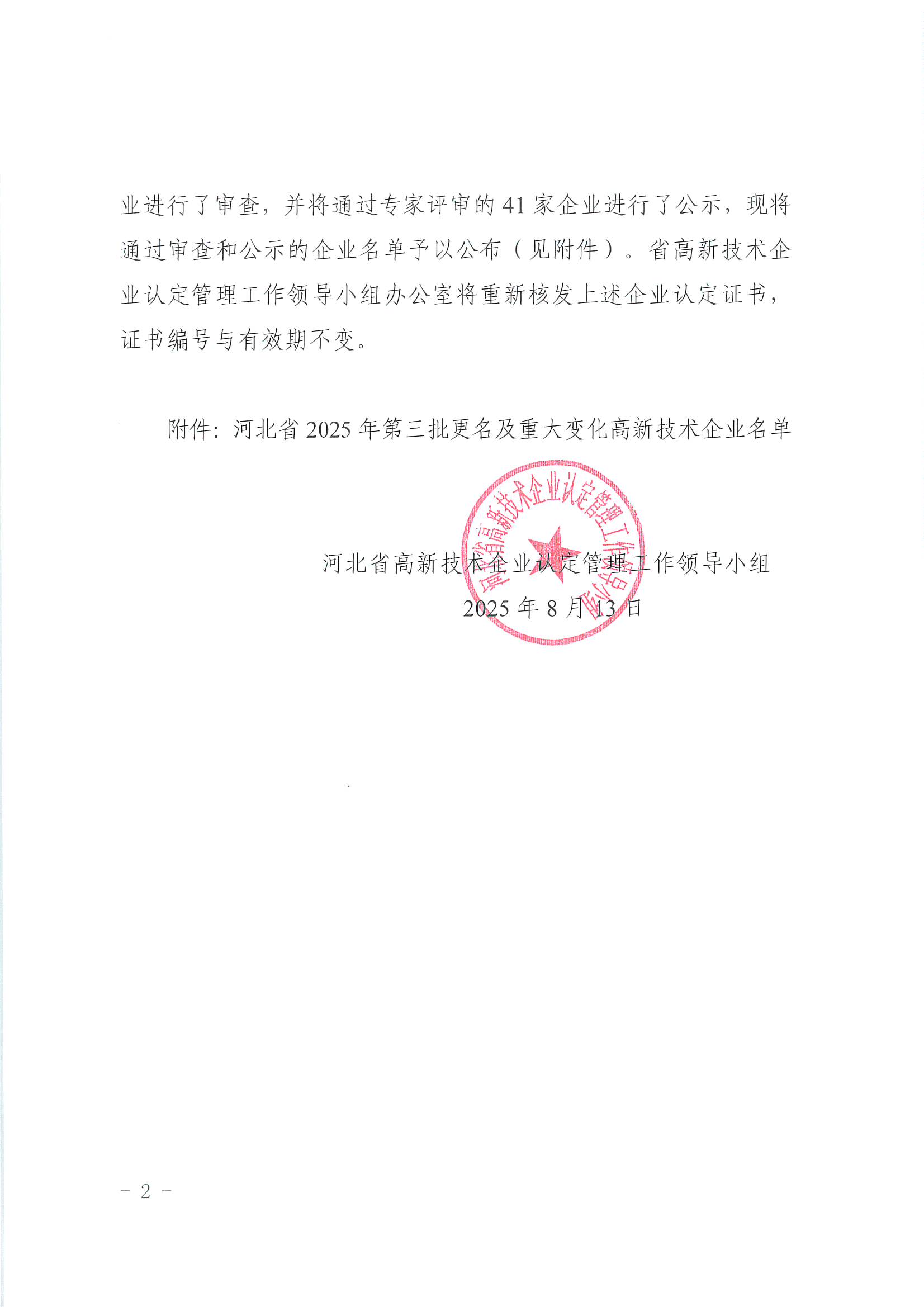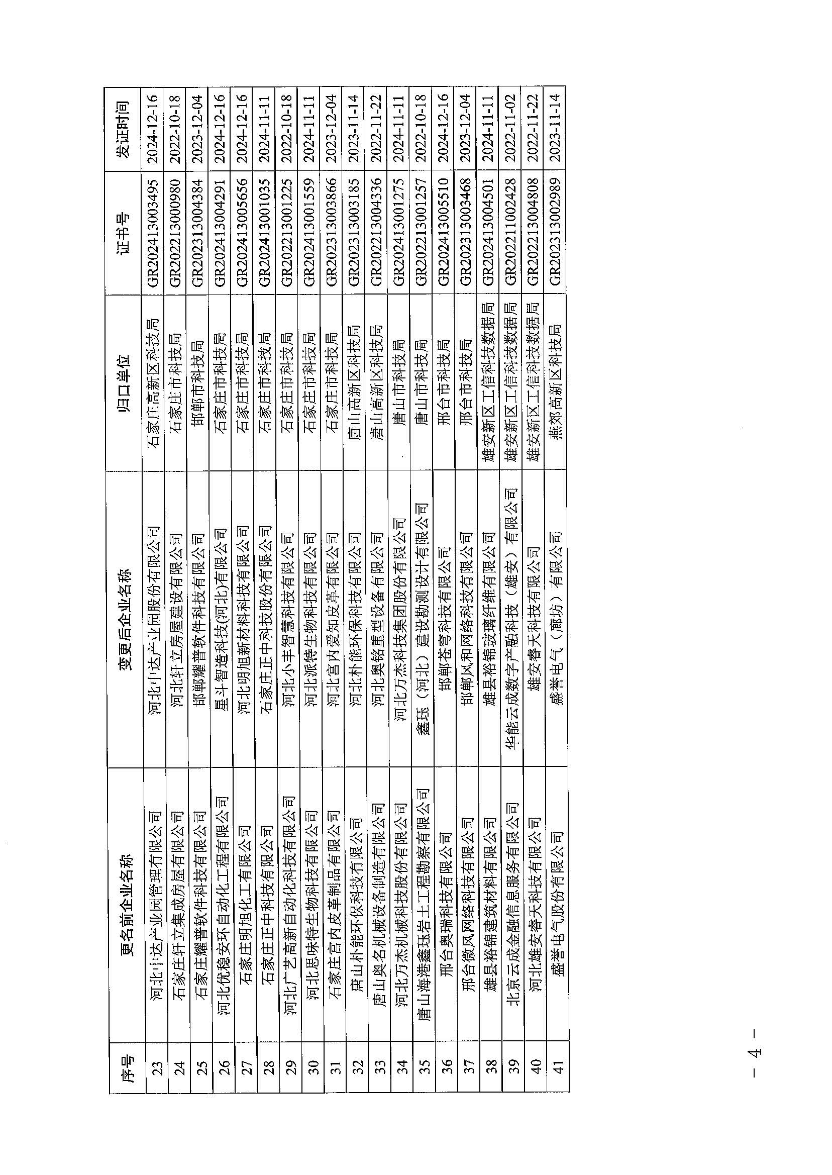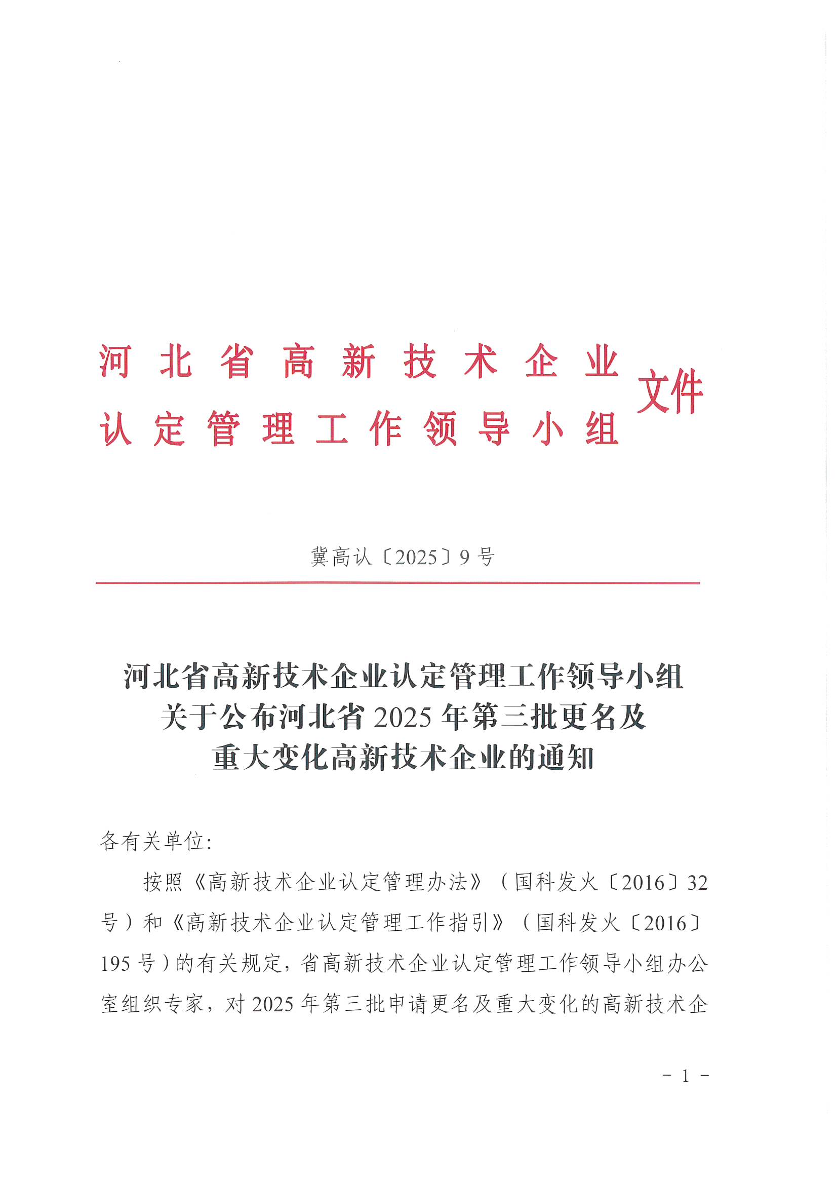 關于公布河北省2025年第三批更名及重大變化高新技術企業(yè)的通知