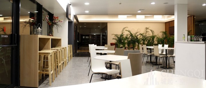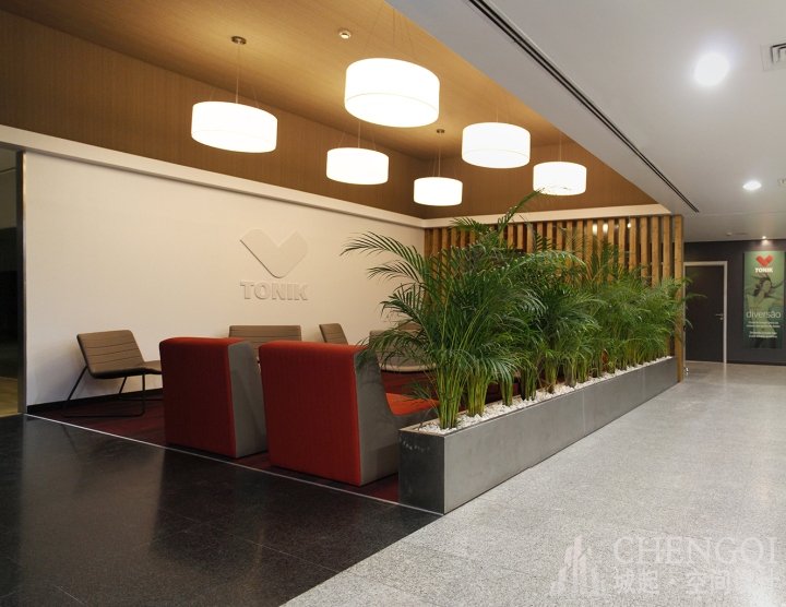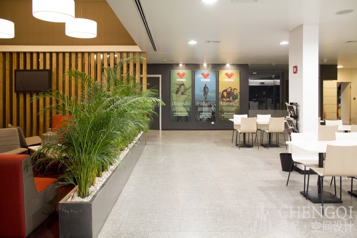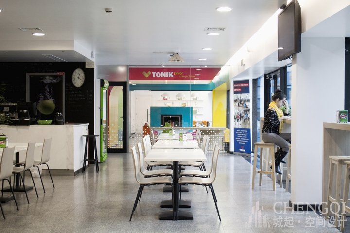 對于這個位于里斯本優(yōu)質(zhì)地段之一的TONIK健康俱樂部來說,他們最初的改造設(shè)想很簡單,那就是重做下接待處和門廊休息區(qū)的樣子布局。客人要經(jīng)過接待處才能到達(dá)俱樂部,這個絕佳的地方不容浪費(fèi),因此,設(shè)計(jì)師在這里重新設(shè)計(jì)了一個等候區(qū),和一個Tonik產(chǎn)品售賣處。在接待處驗(yàn)證會員信息之后往里走進(jìn)來,就來到了門廳休息區(qū),這里有各種會員服務(wù)、咖啡吧和一個休息處。
